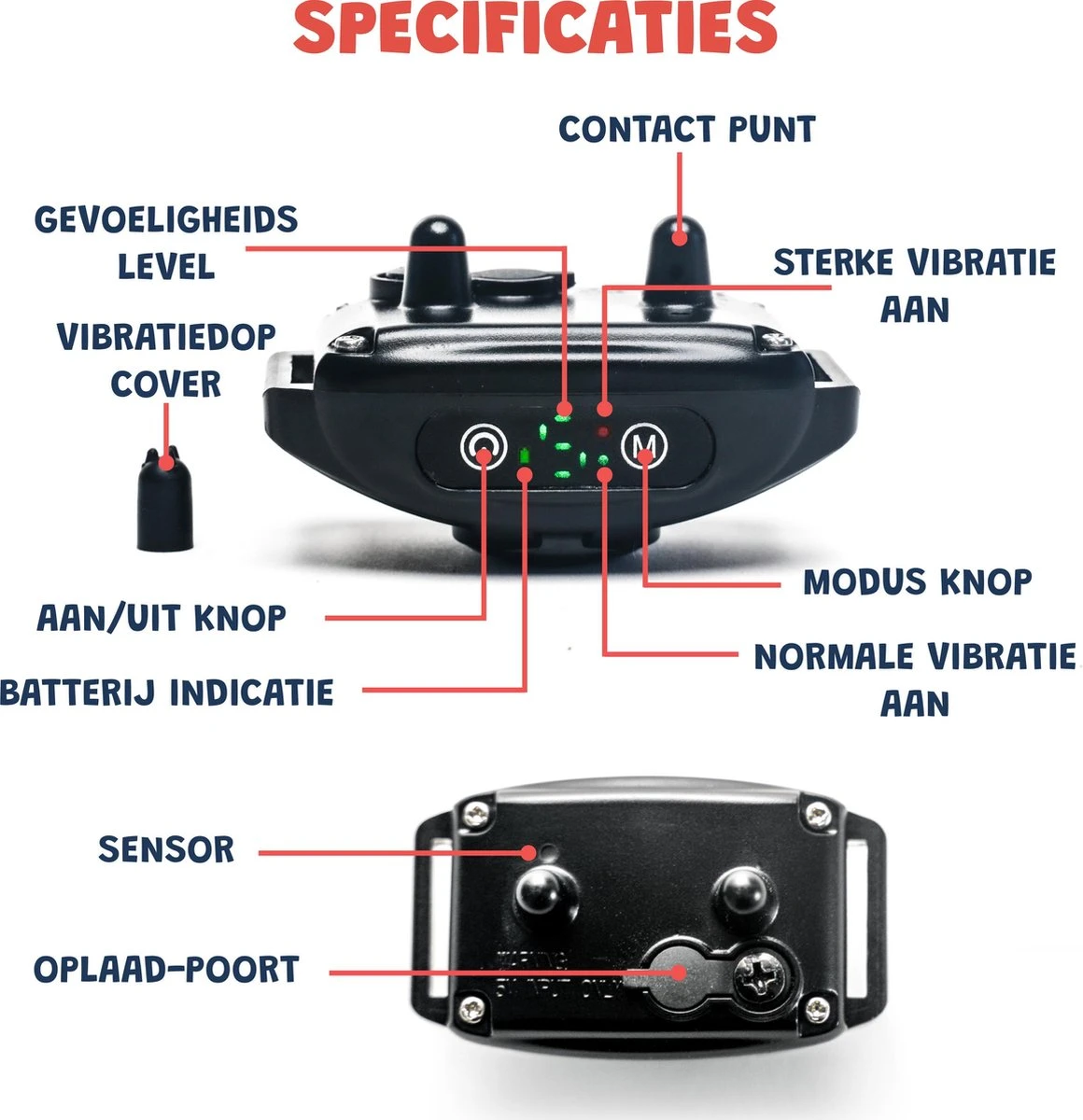 Slim systeem – Ultrasone piepfrequenties en verschillende vibratieniveaus corrigeren iedere blaffende hond. Blaft je hond door de eerste anti-blaf-trigger heen, dan worden de vibraties sterker, waardoor jouw luidruchtige viervoeter alsnog pas op de plaats zal maken. Zonder pijn.