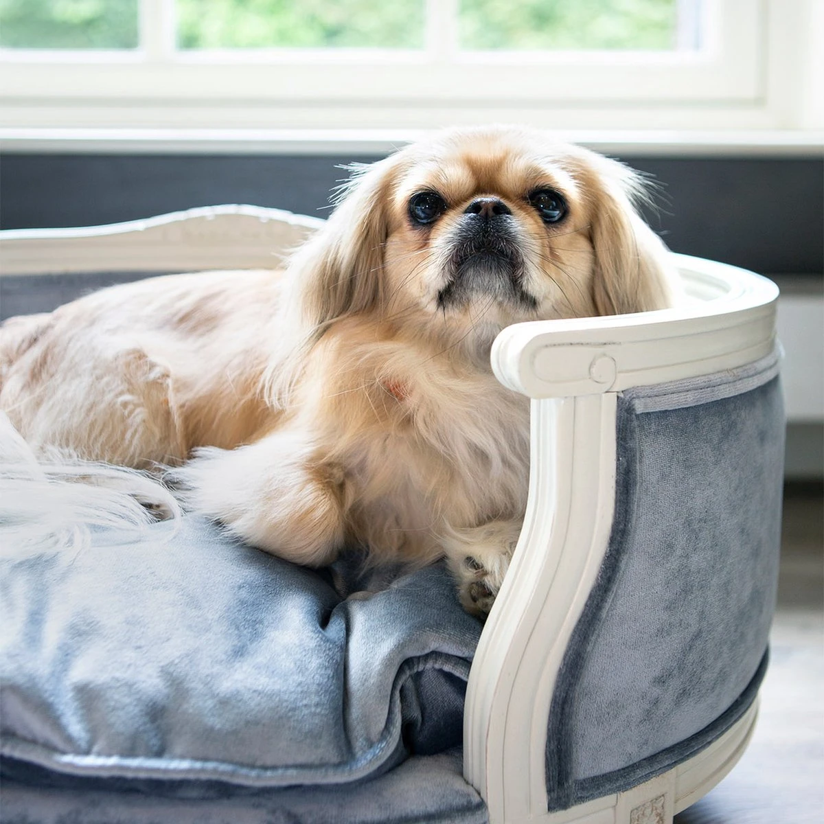 De stijl van Lodewijk XVI ligt ten grondslag aan het design van luxe hondenmand George. Koninklijk comfort straalt er dan ook vanaf. De George is daarom niet alleen een vorm van luxe, het is de sleutel tot een luxe hondenleven. Het gewelfde eikenhouten frame, met zijn prachtige handgesneden details, voert u terug naar de Gouden Eeuw. Klasse en stijl zijn ruim vertegenwoordigd in de George. Het meubelstuk is daarom de perfecte luxe toevoeging voor uw stijlvolle interieur.