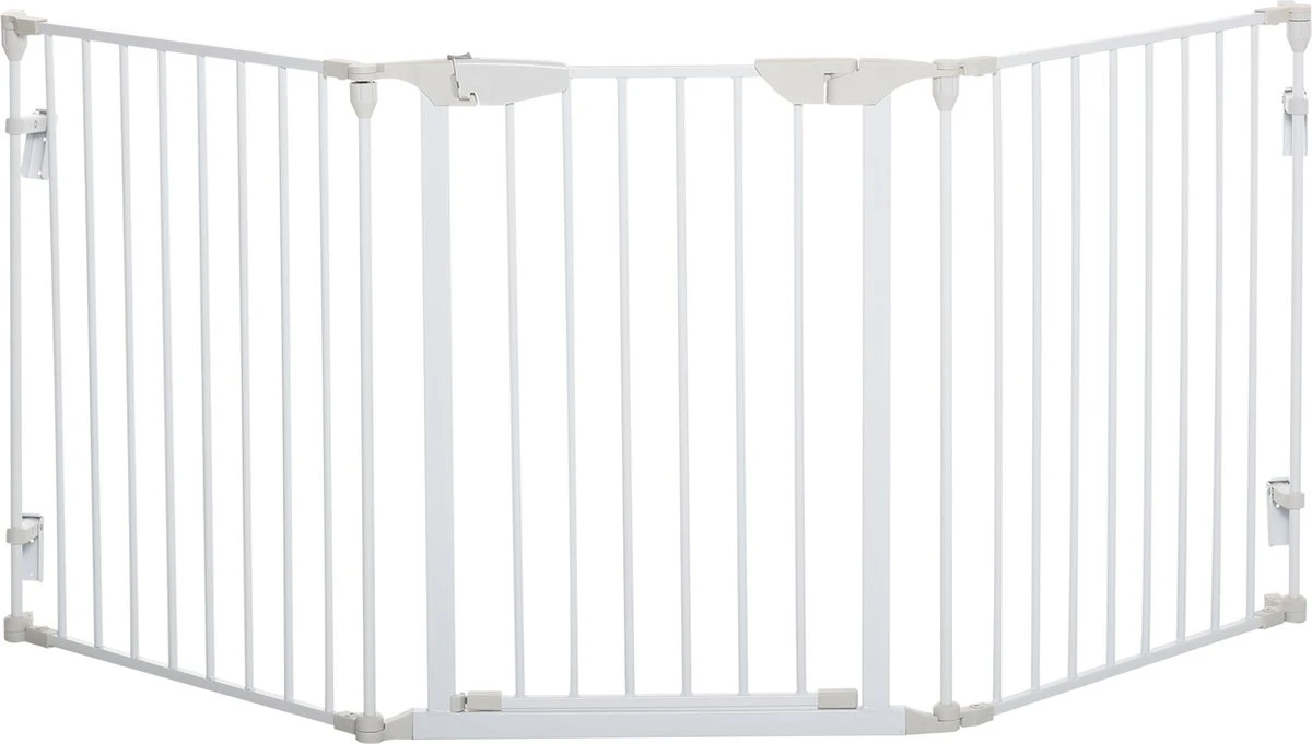Dit hondenhek van PawHut is ontworpen om een veilige en comfortabele ruimte te creëren voor je dierbare harige vrienden. Het kan worden gebruikt als dierenbox, veiligheidshek, afscheiding voor de kachel en de kerstboom, en zelfs als scheidingswand. Dankzij het inklapbare design kan het hek gemakkelijk worden vervoerd en opgeborgen als het niet wordt gebruikt. Geef je huisdier een thuis met deze box! Eigenschappen: · Kan aan de muur worden gemonteerd met behulp van de meegeleverde accessoires · Kan worden gebruikt als kinderbox, veiligheidshek, afscherming van kerstboom, en kachel, of worden ingezet als scheidingswand, etc. · Het hek sluit automatisch als de openingshoek kleiner is dan 90° en blijft open als deze groter is dan 90° (het hek sluit niet als de hoek kleiner is dan 15°) · Dit veiligheidshek voor dieren kan in elke gewenste vorm worden gezet in een L-vorm, U-vorm, etc. · Trek de knop terug en til hem op om de deur te openen · Sterk metalen frame met gepoedercoat oppervlak, niet giftig, duurzaam, gaat jarenlang mee · Inklapbaar design voor eenvoudig opbergen en vervoeren · Geschikt voor kleine en middelgrote honden Technische gegevens: · Kleur: Wit · Materiaal: Metaal, kunststof · Afmetingen volledig uitgeklapt: 180 L x 3 B x 74,5 H cm · Afmetingen opgevouwen: 60 L x 7 B x 74,5 H cm · Afmetingen per paneel: 60 L x 3 B x 74,5 H cm · Afstand van de hekken: 5,8 cm · Aantal panelen: 3 · Omvang van de levering: 1 x Deurafscherming · Verzendbriefje: Geen verzending naar Nederlandse eilanden.