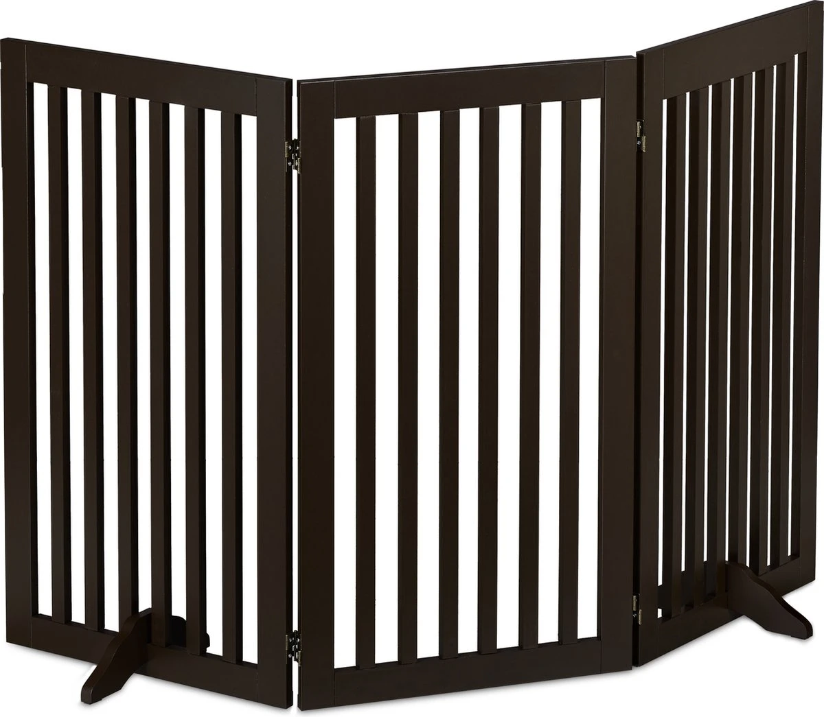Trappen en deuren kunnen voor huisdieren al snel gevaarlijk worden. Daarom is het belangrijk in je woning voor voldoende bescherming te zorgen. Dat kan je doen met een trap-of deurhekje. Je kan het hekje flexibel plaatsen aan de open haard, trap of deuropening. De 2 voeten zorgen ervoor dat het deurhekje stabiel staat. Het enige wat je hoeft te doen is het bruine hondenhekje een plekje naar keuze te geven en daar op te stellen. Bij niet-gebruik kan het hekje ruimtebesparend opgevouwen en opgeborgen worden.