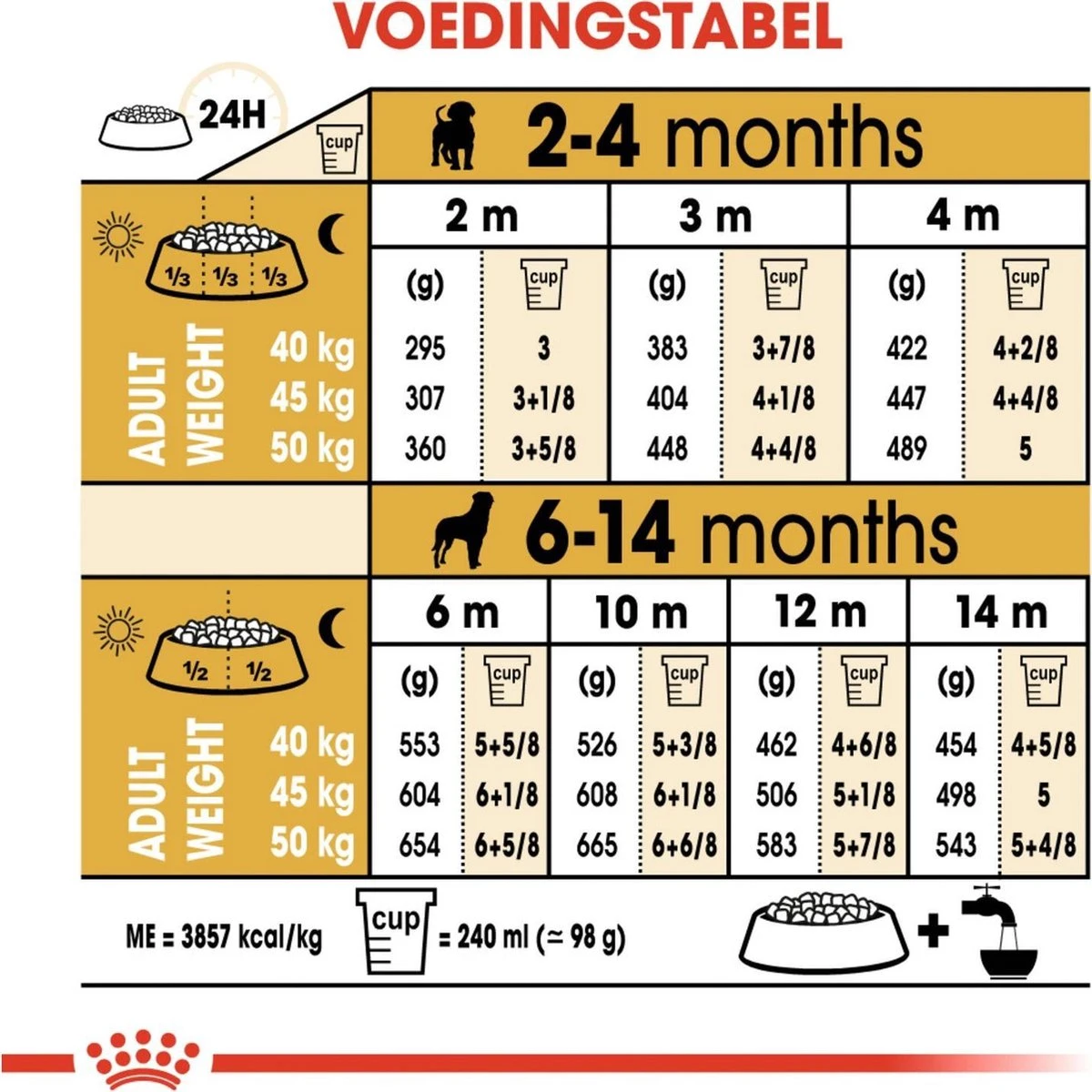 Je Rottweiler pup is gezond, toch? Of zou hij in deze belangrijke groeifase nog wat ondersteuning voor zijn weerstand kunnen gebruiken? En de opbouw van zijn spieren en skelet heeft hij daar wat extra’s voor nodig? Rottweiler Junior van ROYAL CANIN® is speciaal ontwikkeld om de natuurlijke weerstand en de spieropbouw van je pup te ondersteunen.